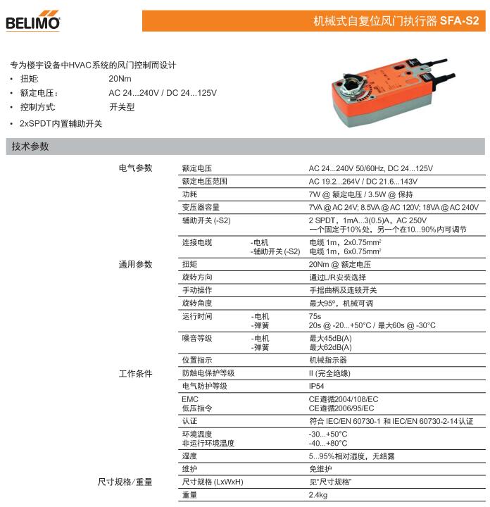 • SFA機械式自復位風門執行器