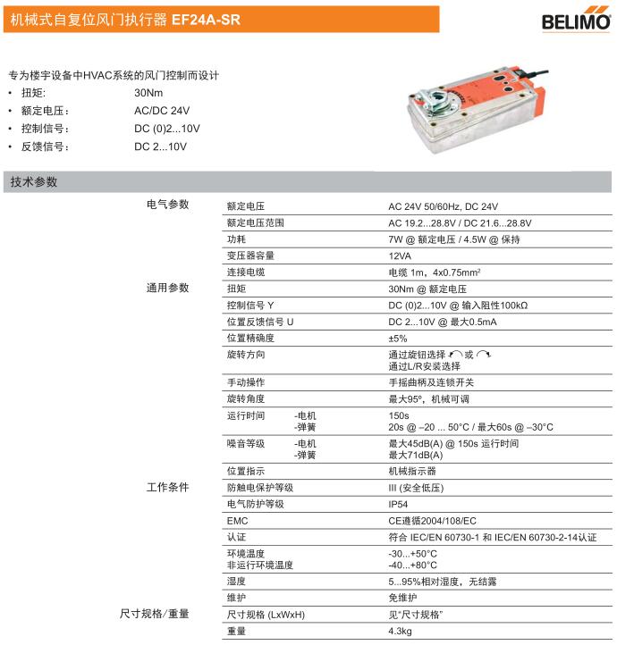 • EF24A機械式自復位風門執行器