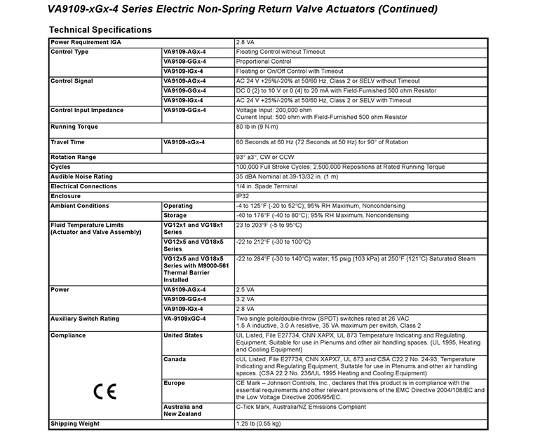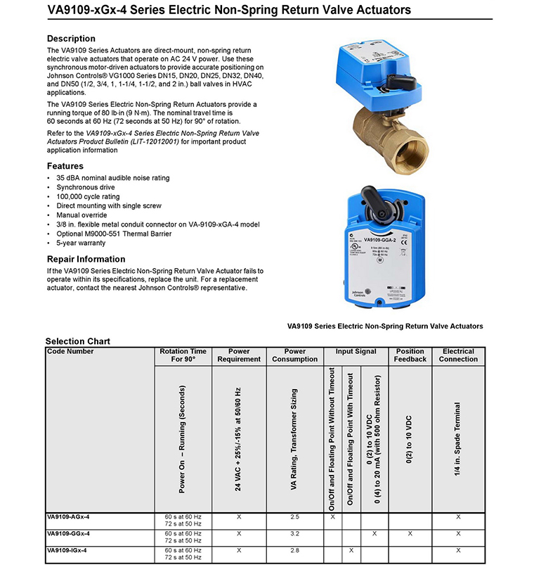 • VA9109球閥執行器