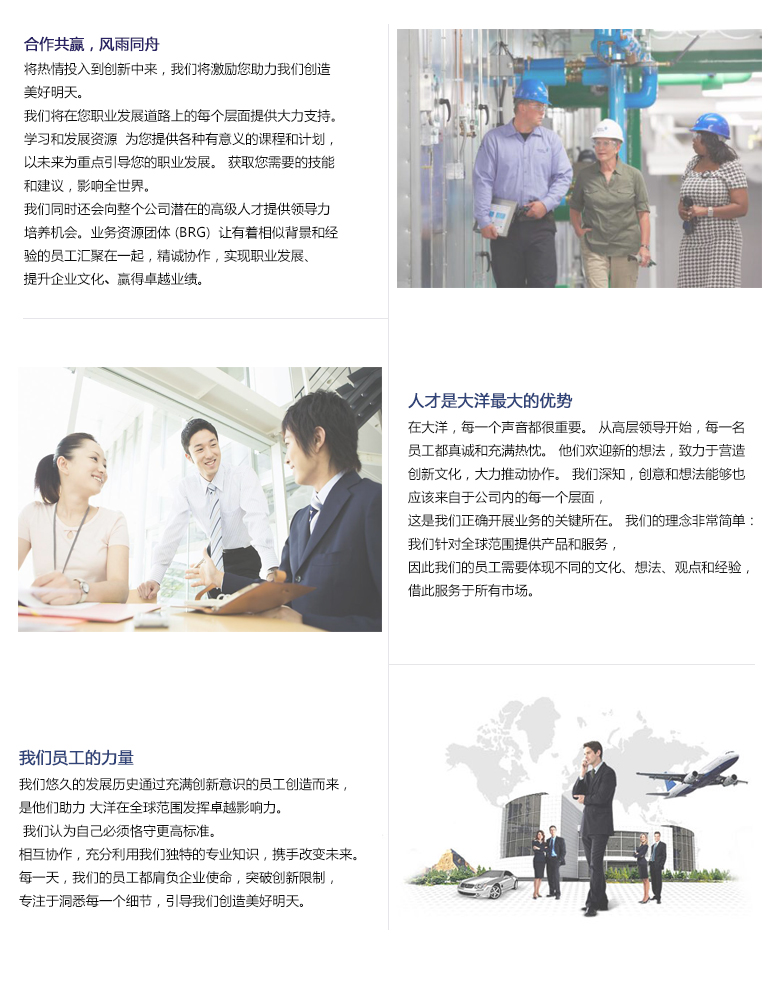 未來始于當(dāng)下,大洋自動化樓宇系統(tǒng)將致力于提高未來的工作效率、安全性和可持續(xù)性。我們創(chuàng)造完美協(xié)調(diào)的智能建筑、高能效解決方案、集成式基礎(chǔ)設(shè)施以及新一代交通運輸系統(tǒng),實現(xiàn)智慧城市和社區(qū)的承諾。這一承諾的核心要義就是通過創(chuàng)新讓人們的生活和整個世界變得更美好。我們承諾幫助客戶取得成功,通過戰(zhàn)略性地專注于發(fā)展建筑和能源兩大增長平臺,為各方利益相關(guān)者創(chuàng)造更大的價值。