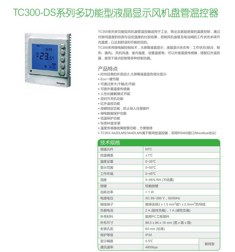 • TC300-DS系列多功能型液晶顯示風(fēng)機(jī)盤管溫控器